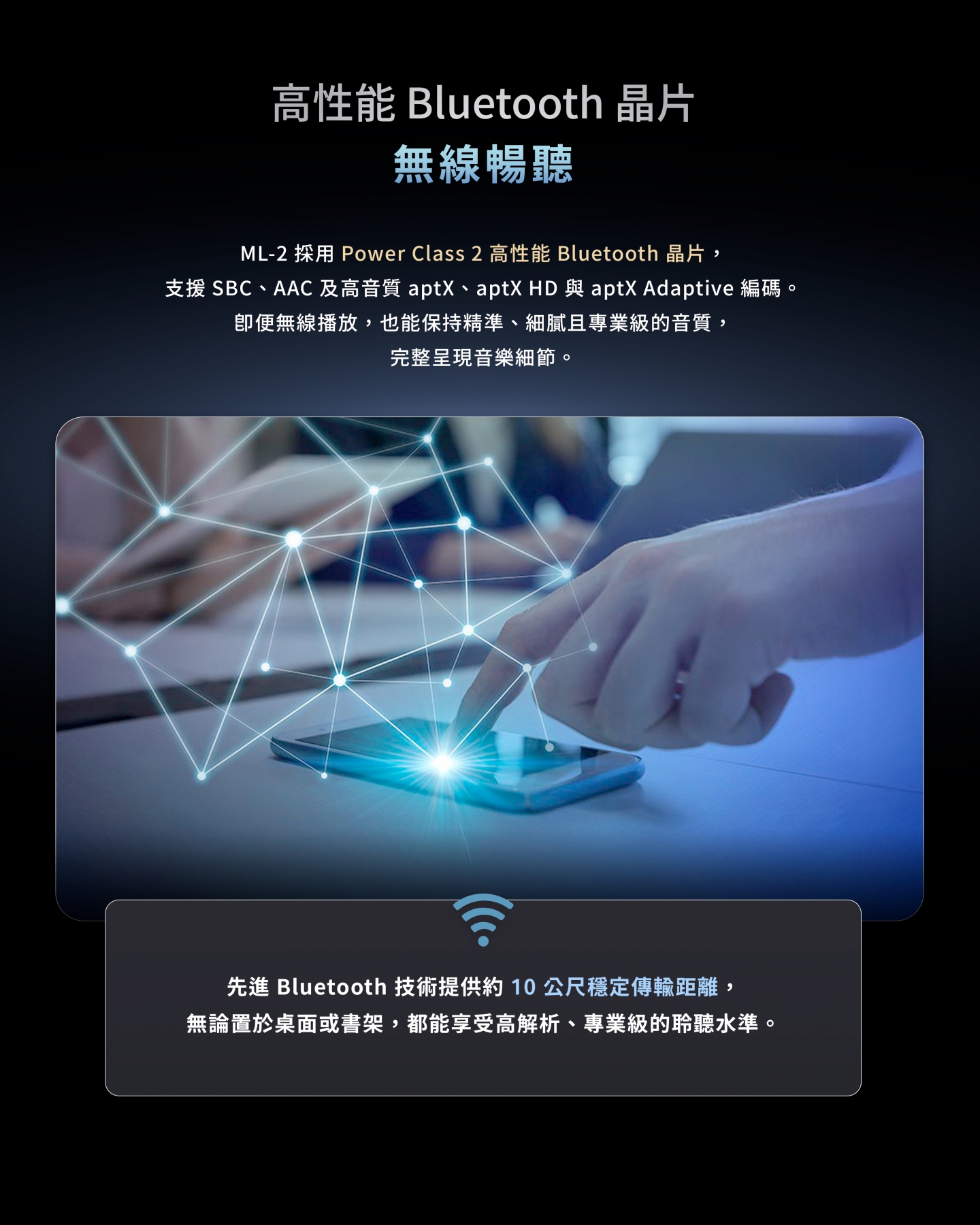 支援解碼格式:aptX、aptX HD、aptX Adaptive、SBC and AAC