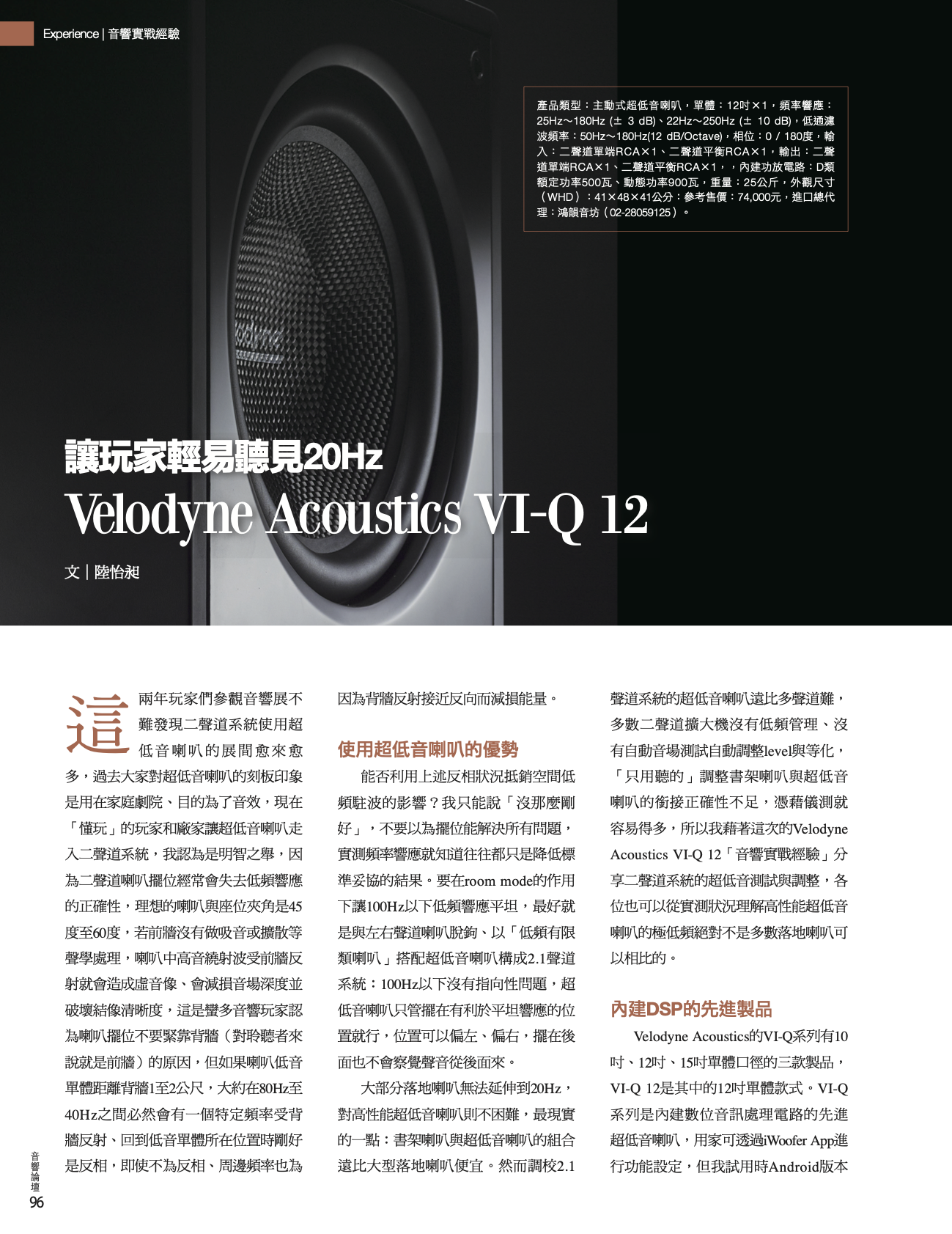 「音響論壇」Velodyne Acoustic 威力登 VI-Q 12