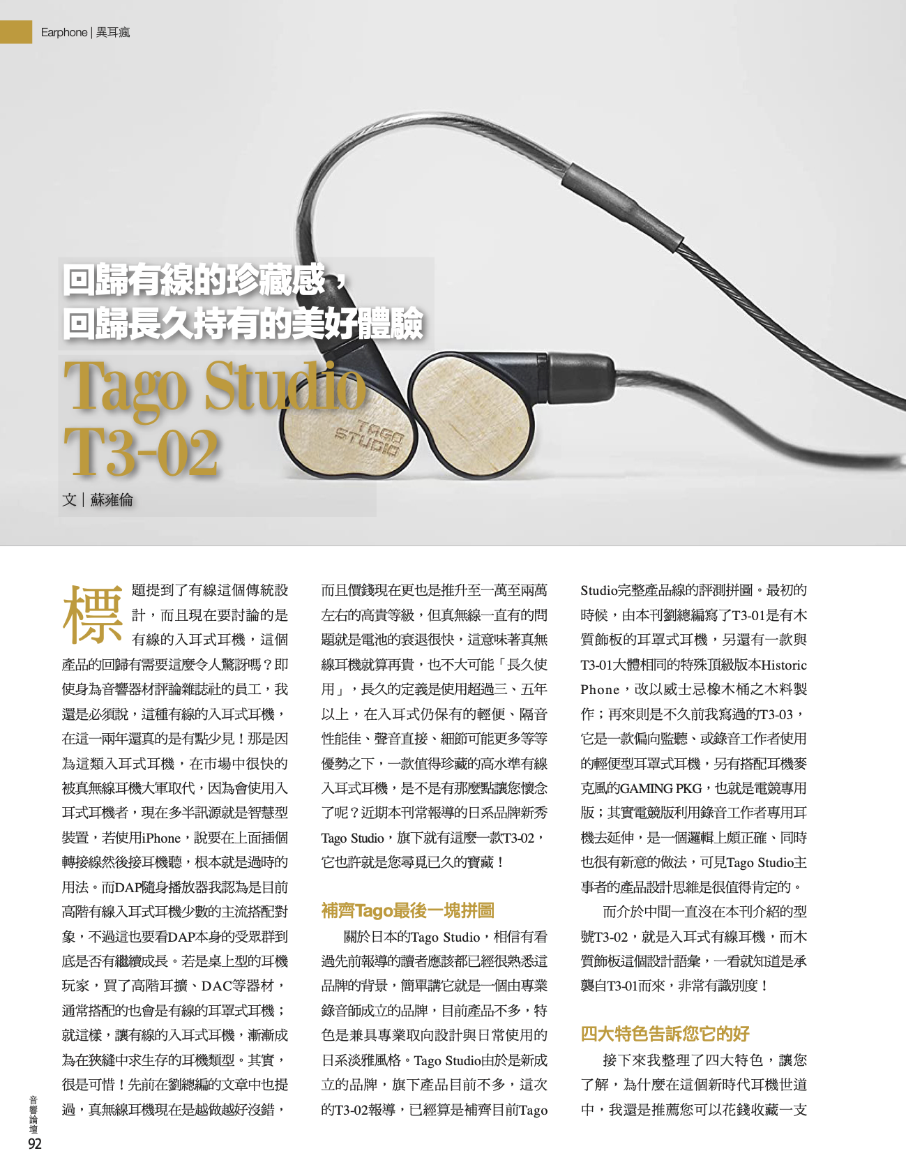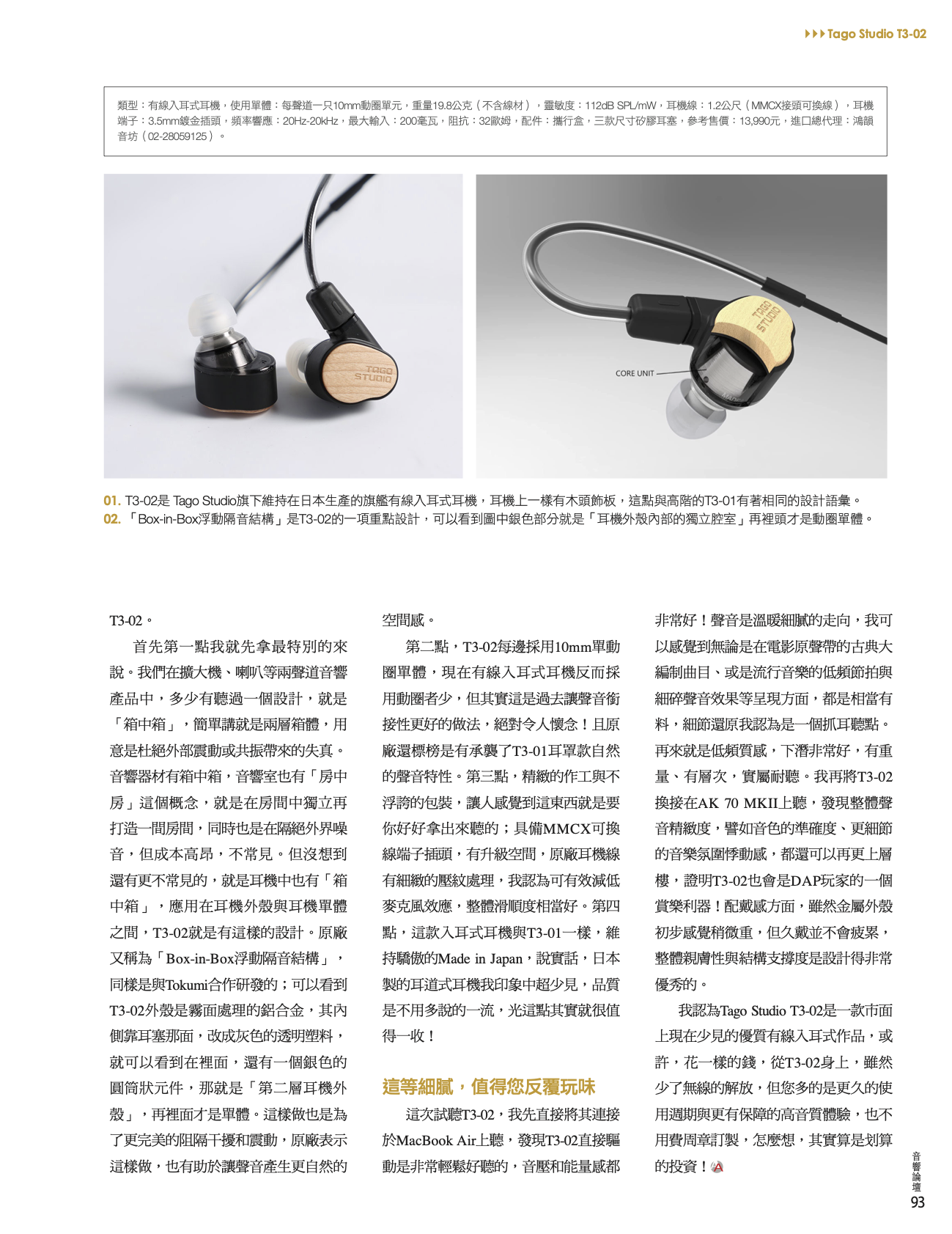 「音響論壇」TAGI STUDIO T3-02 經典高傳真入耳式耳機
