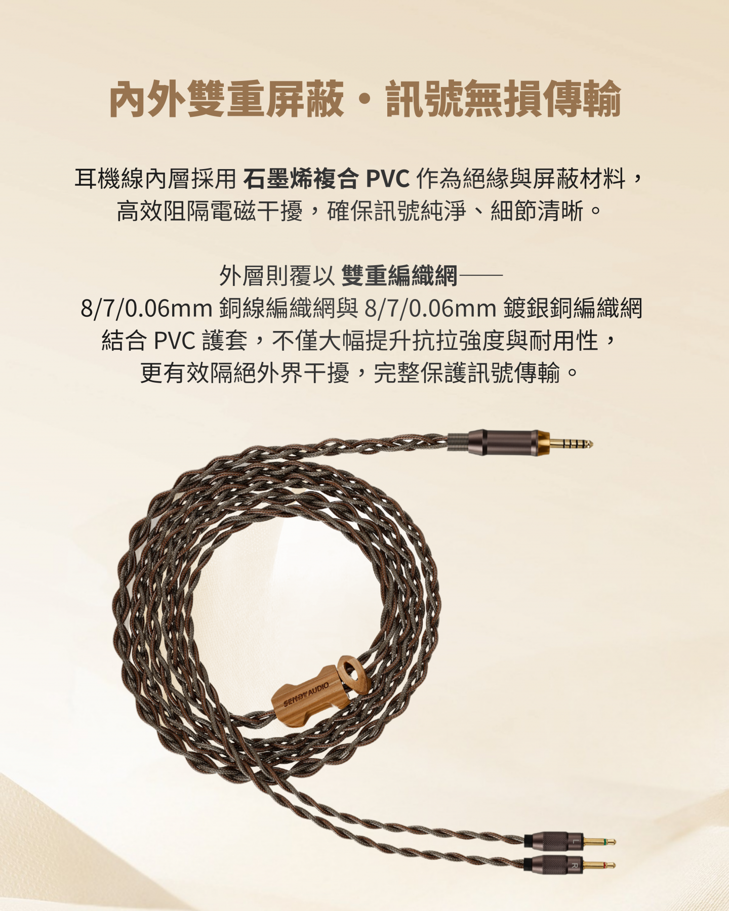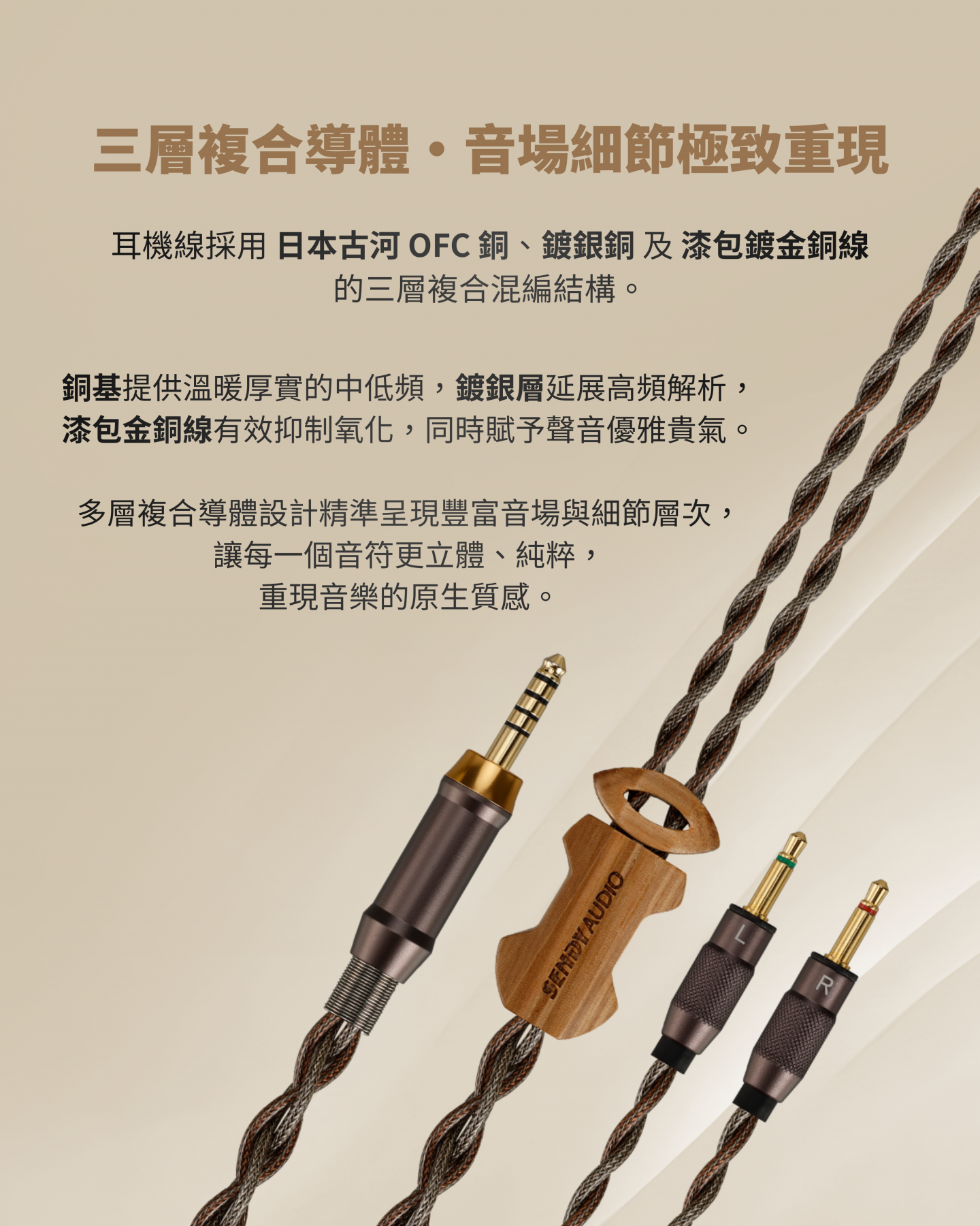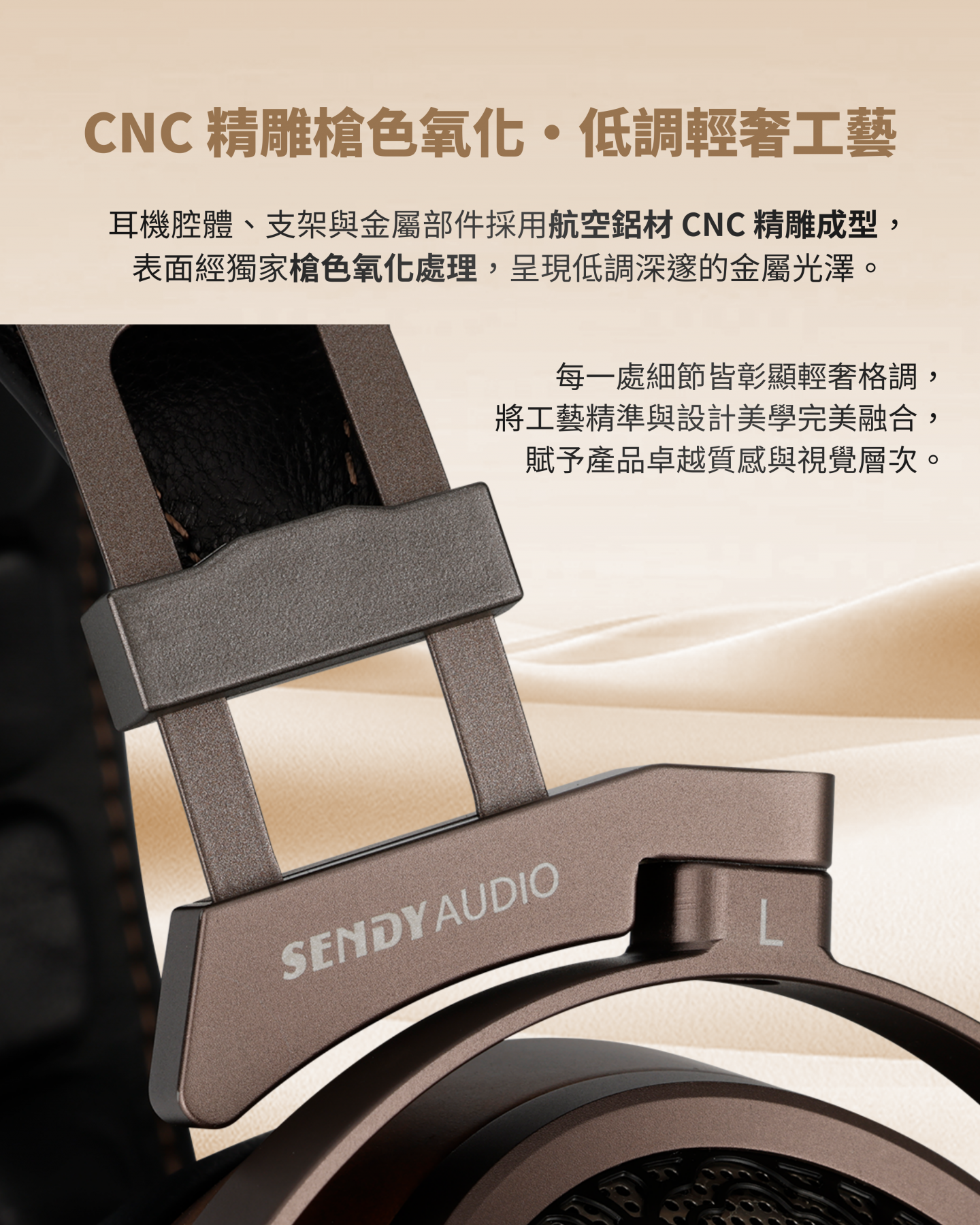 採用奈米級複合振膜與 EB 精密蒸鍍技術,多層複合導體精準重現豐富音場與細節層次;搭配高密度黑胡桃木耳殼與小山羊皮耳罩,結合人體工學與傾斜耳套設計,帶來舒適貼合佩戴感受,呈現極致音質與聲音純淨。